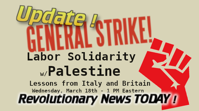 On March 18th, the National Labor Network for Ceasefire and In These Times magazine will host an international webinar featuring trade unionists from Italy and Britain engaged in direct action for justice for Palestinians.
